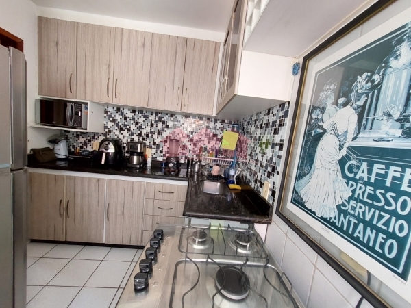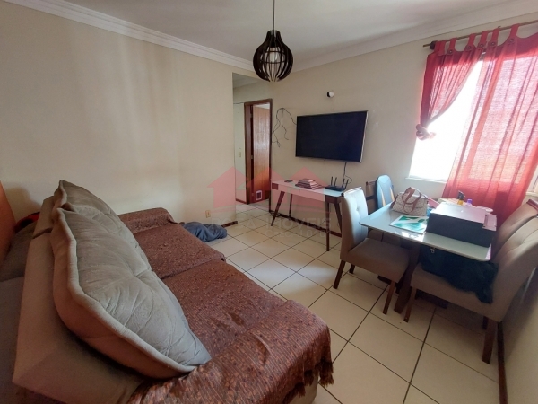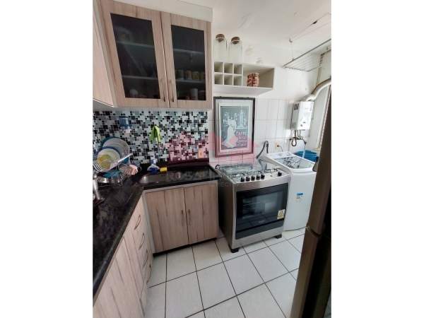 Apartamento de 2 quartos, no condomínio Recanto do Bosque 3, com 48m2, bom acabamento, piso em cerâmica clara, com armários planejados na Cozinha e na Área de Serviço.